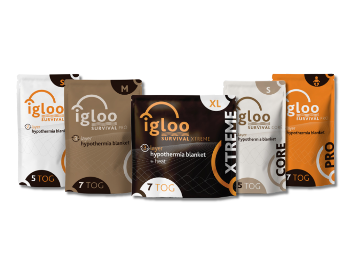 Designed for emergencies, the Igloo Collection hypothermia blankets combine advanced materials to trap and reflect body heat. Providing essential warmth and protection, they are a vital tool in critical moments.