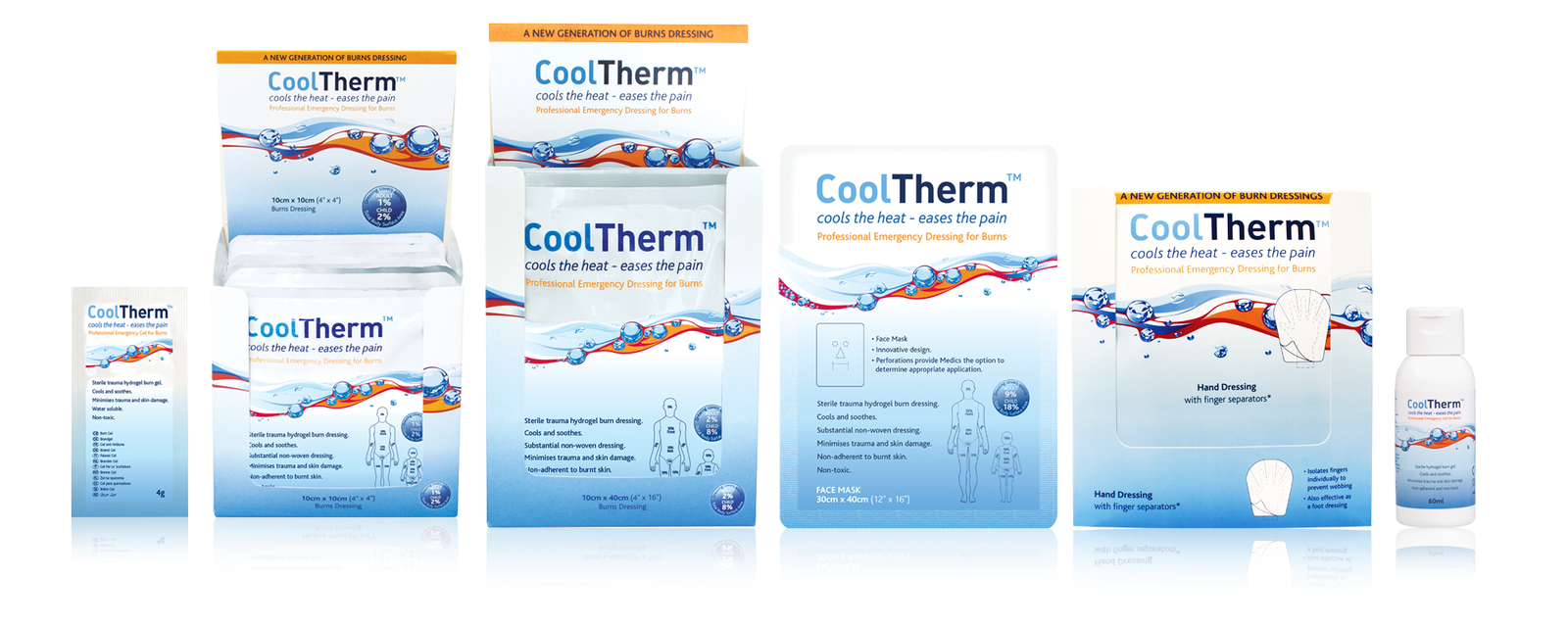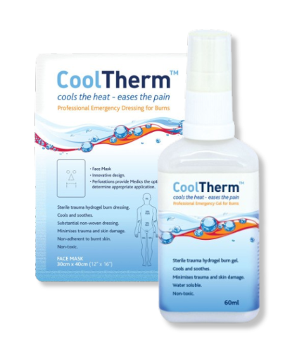 CoolTherm ™ absorbs the thermal energy from the burn, dissipating the heat, and cooling the skin..