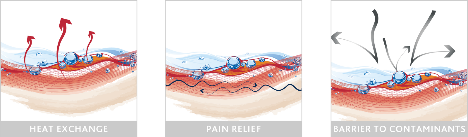 CoolTherm™ relieves the pain by isolating damaged nerve endings from the air...