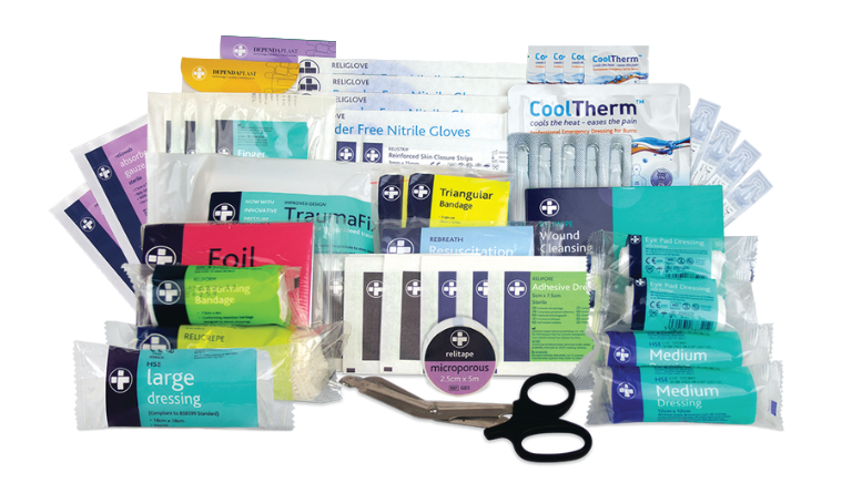 Designed for Industry, Trade and Off-Site Workers. This is risk based assesment kit and includes professional dressings, COOLTHERM™ and TRAUMAFIX™